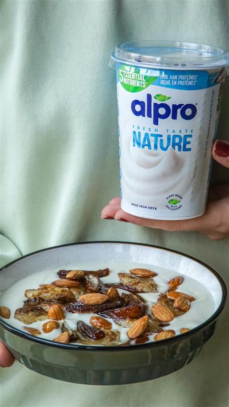 Begin je dag met dit verrassende ontbijt van @lennaomrani: gebakken banaan en dadels met een scheutje olijfolie, geserveerd met Alpro Mild & Creamy Nature. Plantaardig, simpel en met 5 essentiële voedingsstoffen!
