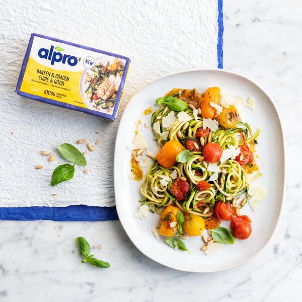 Verhit wat Alpro Bakken & Braden in een pan op een matig vuur. Kruid de bloemkool met ras-el-hanout en bak de 'steaks' tot ze mooi goudbruin kleuren en beetgaar zijn.