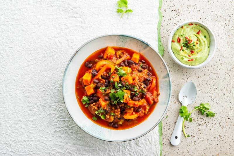 Voeg de Alpro Greek Style Natuur en de chilivlokken toe, kruid af naar smaak en roer tot alles goed gemengd is.