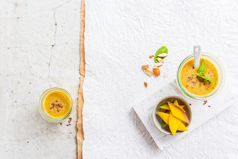 Verse le tout dans un verre garni d’un peu de menthe, sirote et savoure cette bombe de saveurs exotiques.