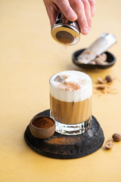 Fais mousser l‘Alpro Barista Noix de Coco à 65°C et ajoute-le à l‘expresso.