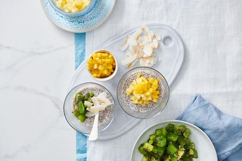 Alpro Haferdrink Ohne Zucker und Haferflocken in einem Kochtopf zum Kochen bringen, anschließend von der Herdplatte nehmen und sechs Minuten ziehen lassen.