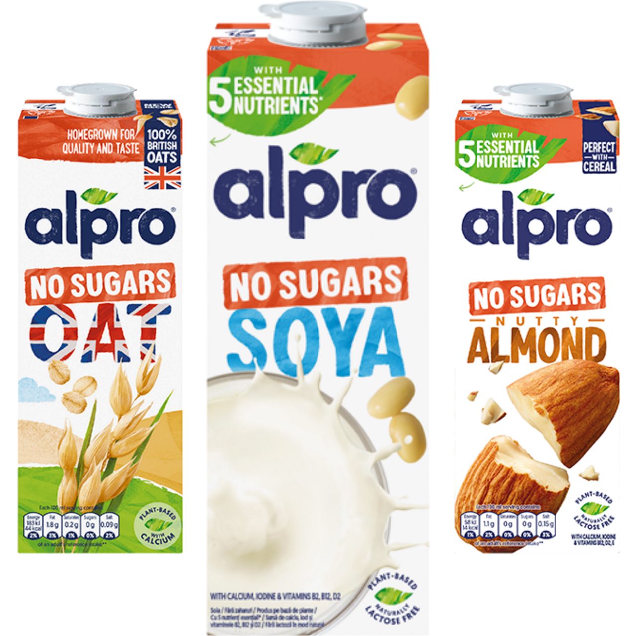 Alpro offers a wide range of food and drinks, containing variable quantities of sugar – from unsweetened and low sugar products, through to gently sweetened, indulgent products.