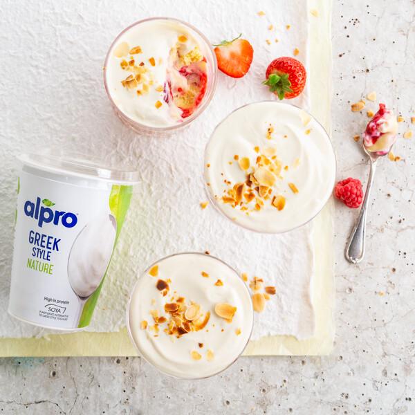 Versez la farine dans un saladier, ajoutez l’huile et le skyr Alpro à la vanille. Pétrissez rapidement ces ingrédients pour obtenir une boule de pâte à tarte. Si elle trop humide, ajoutez un peu de farine, si elle est trop sèche, ajoutez un peu d'eau. Laissez la pâte reposer au frigo 30 min.