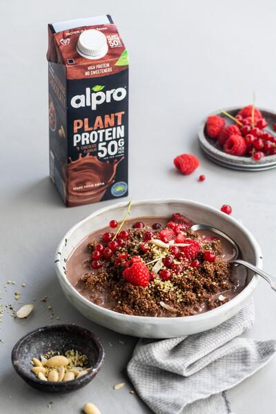 Protein contributes to a growth in muscle mass as well as the maintenance of muscle mass and the maintenance of normal bones. Alpro Go on can be part of breakfast to get you started for the day or serve as perfect pick-me-ups during the day. A varied, balanced diet and a healthy lifestyle are recommended for good health.