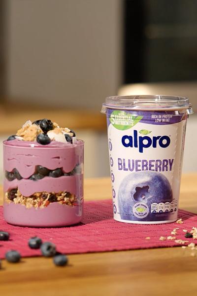 Βάση σόγιας (84,8%) (νερό, αποφλοιωμένοι καρποί σόγιας (9,8%)), ζάχαρη, μύρτιλο (5,7%), ασβέστιο (φωσφορικό ασβέστιο), σταθεροποιητής (πηκτίνες), συμπύκνωμα μαύρου καρότου, συμπύκνωμα καρότου και μύρτιλου, φυσικές αρωματικές ύλες, ρυθμιστές οξύτητας (κιτρικά άλατα νατρίου, κιτρικό οξύ), θαλασσινό αλάτι, αντιοξειδωτικά (εκχύλισμα πλούσιο σε τοκοφερόλες, εστέρες λιπαρών οξέων με ασκορβικό οξύ), βιταμίνες (B2, B12, D2), ζωντανές καλλιέργειες (S.thermophilus, L.bulgaricus)