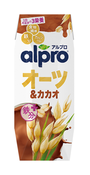 オーツ麦濃縮物、砂糖、食物繊維、ココアパウダー、植物油、食塩/炭酸カルシウム、香料、増粘多糖類、pH調整剤、甘味料(ステビア)、ピロリン酸鉄、ビタミンB2、ビタミンD2
