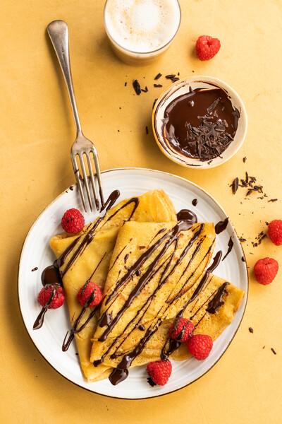 Verhit een beetje kokosolie in een grote pan en schep het beslag erin tot een dunne, gelijkmatige pannenkoek. Bak de pannenkoek tot de onderkant goudbruin is, draai om en bak nog ongeveer een minuut. Ga zo door tot al het beslag op is.