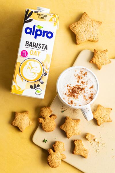 Ha bitene i en blender sammen med cashew-nøtter, Alpro Soya Chocolate Drikk og kardemommefrø.