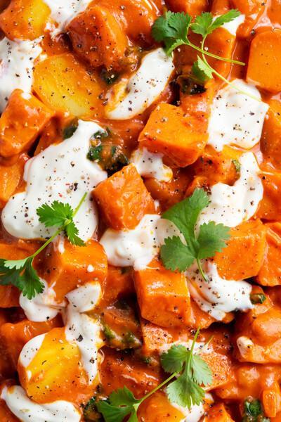 Agora, para o molho: misture o abacate, Alpro Natural Sem Açúcares, os coentros frescos e o sumo de lima e misture até obter uma textura cremosa. Tempere com pimenta preta e sal.