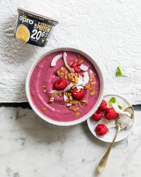 Potom vyskúšajte túto all-in-one zmes plodov vyrobenú z proteínového nápoja alebo nesladeného ovseného nápoja Alpro.