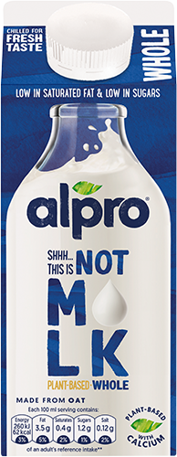 We nailed it! This is not milk. It’s got all the rich, creamy taste you love, 100% plant-based and made from… oats! We call it ‘whole’ because with 3.5% fat, it delivers deliciously full-on creaminess.
