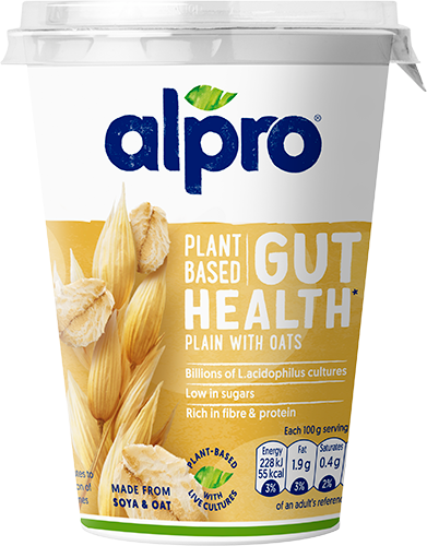 Enjoy Alpro Gut Health* plain with oats on its own, in a smoothie, or get a little bit fruity by adding a sprinkling of berries or bananas. It comes in a handy 400g pot you can dip into, spoon from and enjoy any way you want: less waste, more love for your gut*