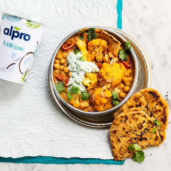 Combine the Alpro Greek Style Plain, harissa and olive oil in a bowl to make the marinade, before coating the cauliflower florets evenly in it.