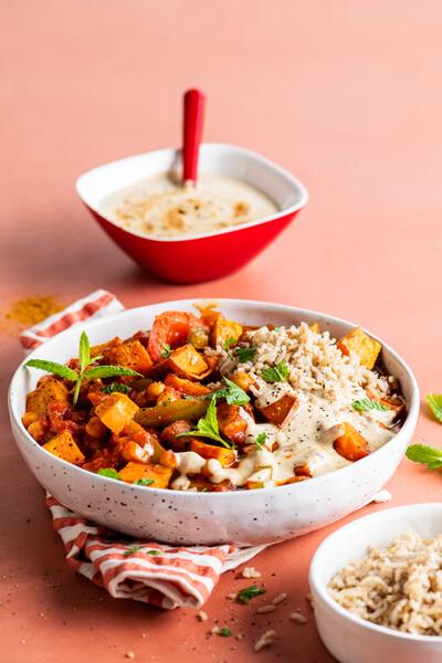 Finally stir through the Alpro Plain plant-based alternative to yogurt in the curry for a further 1-2 minutes without bringing to the boil.